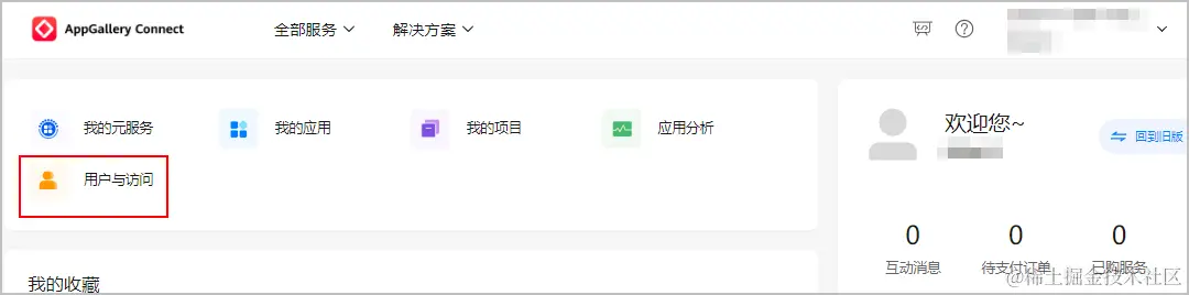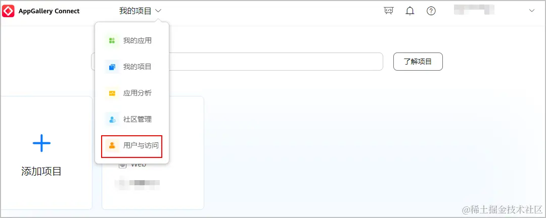 注意 未实名开发者可在当前页面的顶部菜单下拉列表中选择“用户与访问”。