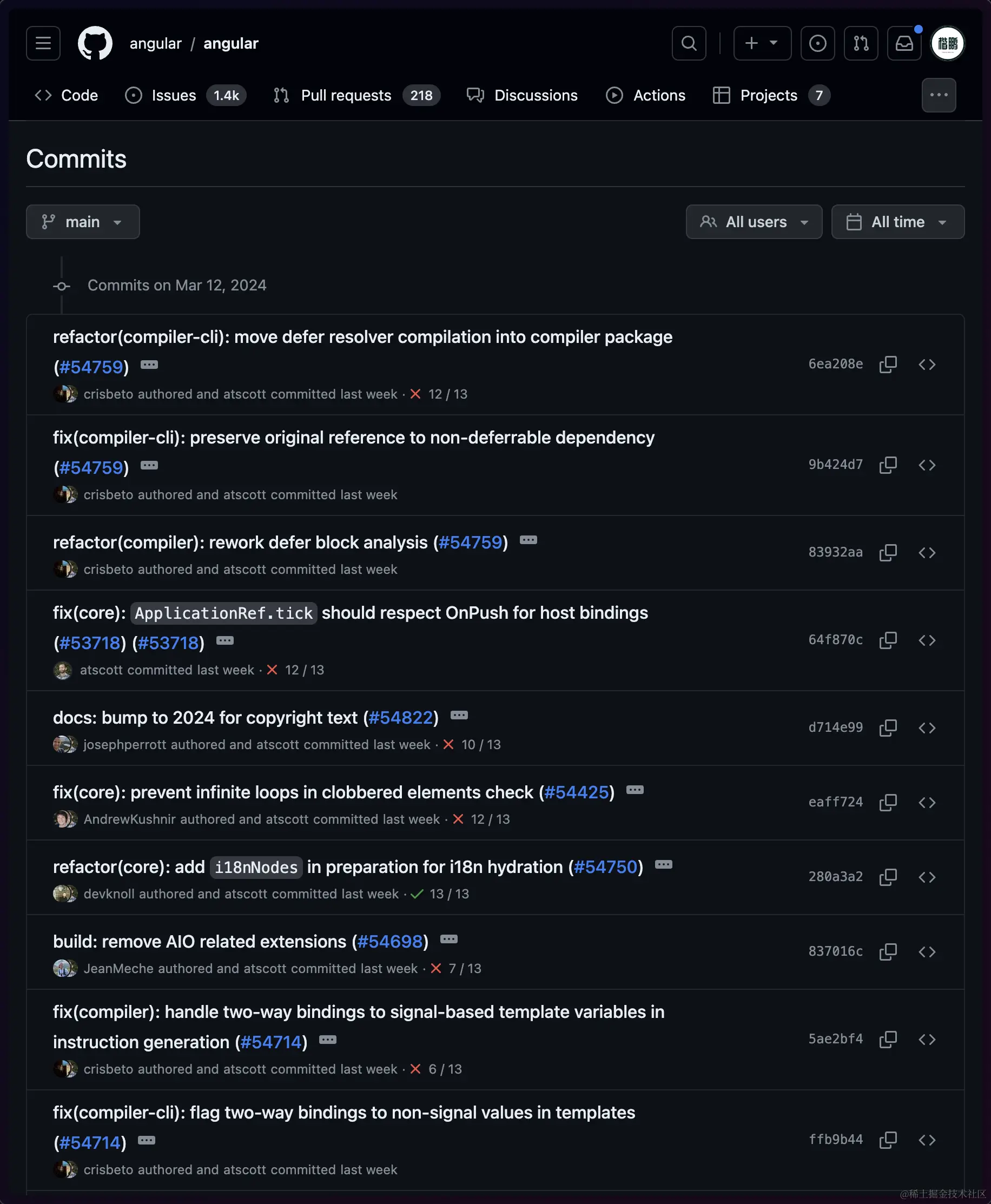 │ └─⫸ Commit 作用域: animations|bazel|benchpress|common|compiler|compiler-cli|core|