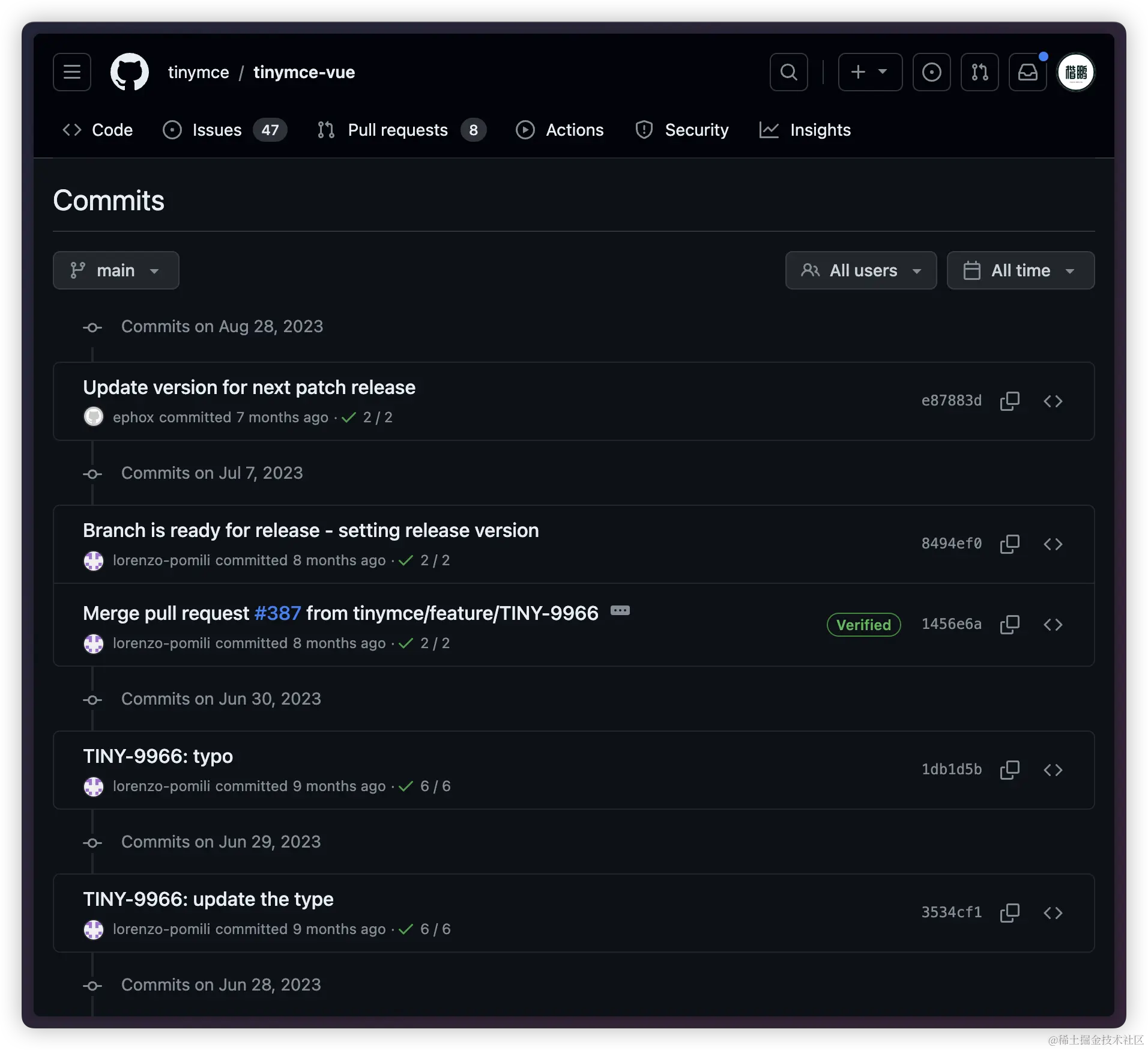 | ci | 对 CI 配置文件和脚本的更改 (示例:CircleCi, SauceLabs, GitHub Workflow) |