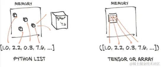我们在这里和那里提到了 NumPy。虽然我们不认为 NumPy 是阅读本书的先决条件,但我们强烈建议您熟悉 NumPy,因为它在 Python 数据科学生态系统中无处不在。PyTorch 张量可以与 NumPy 数组之间进行非常高效的转换。通过这样做,我们可以利用围绕 NumPy 数组类型构建起来的 Python 生态系统中的大量功能。这种与 NumPy 数组的零拷贝互操作性归功于存储系统与 Python 缓冲区协议的工作(docs.python.org/3/c-api/buffer.html)。