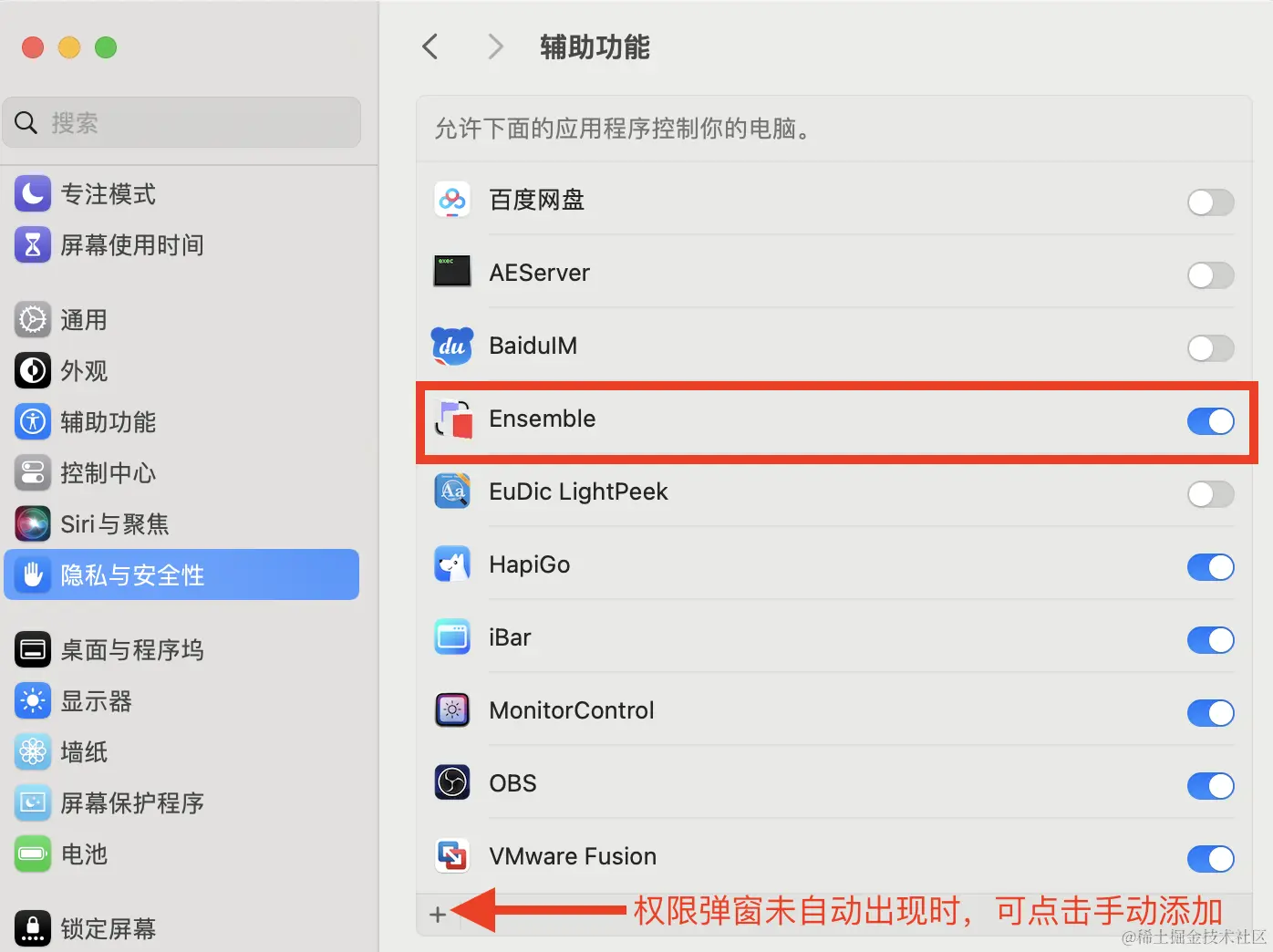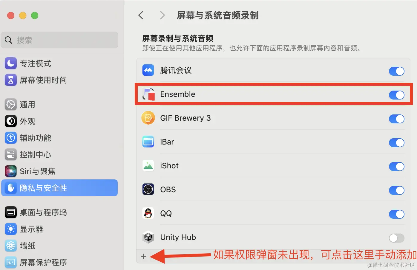 - 允许录屏权限,用来分享 Mac 的屏幕