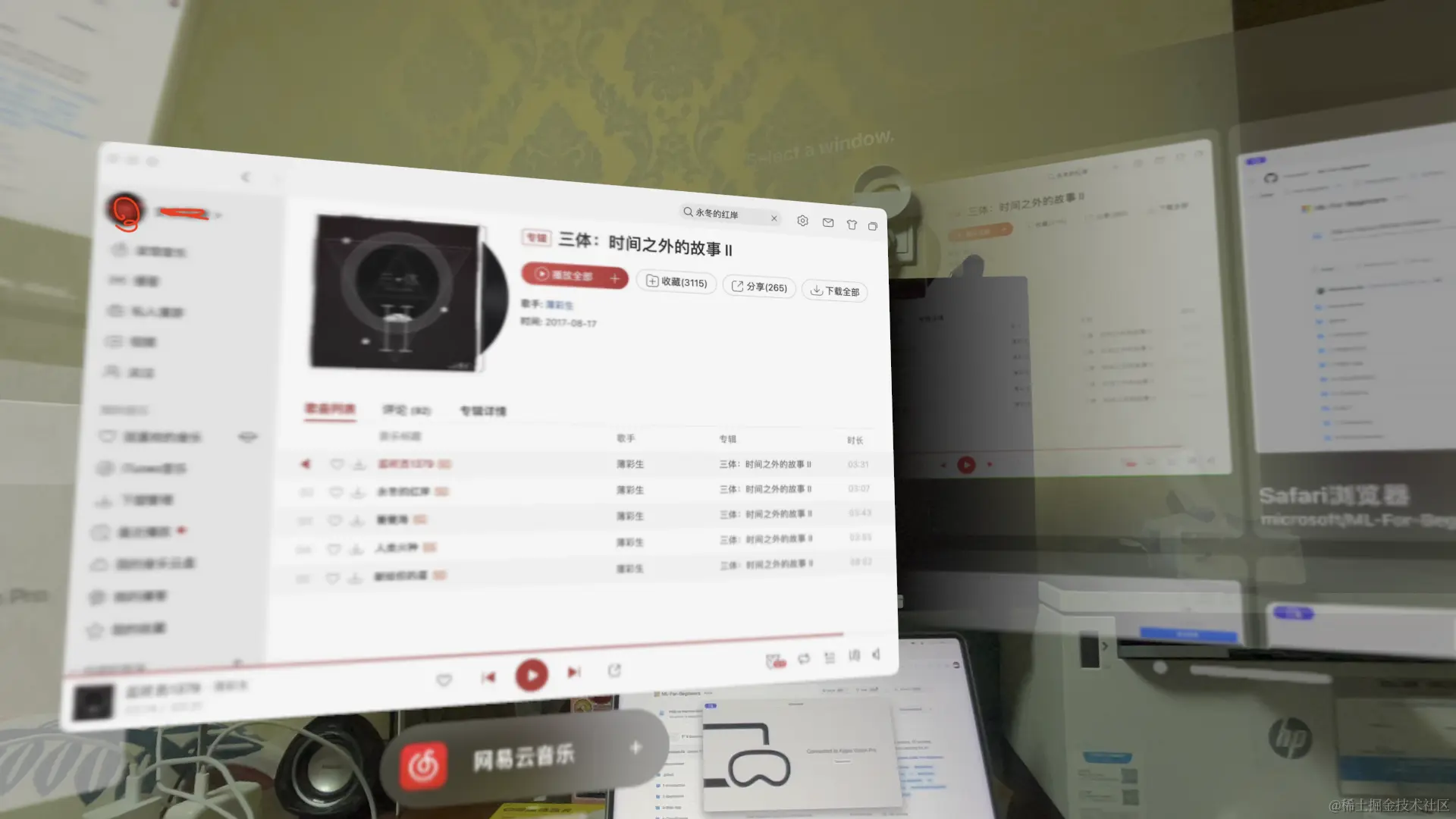 然后在 Vision Pro 上打开对应软件,正常情况下就会自动连接,选择要显示的窗口即可。