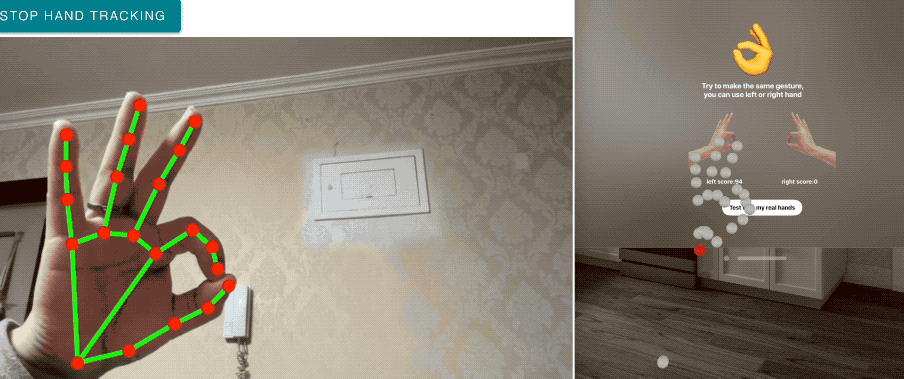 除了常规的视频播放,AmazedVR 中还有一些和手势相关的交互,例如,我们可以通过比爱心手势发送特定的爱心弹幕。