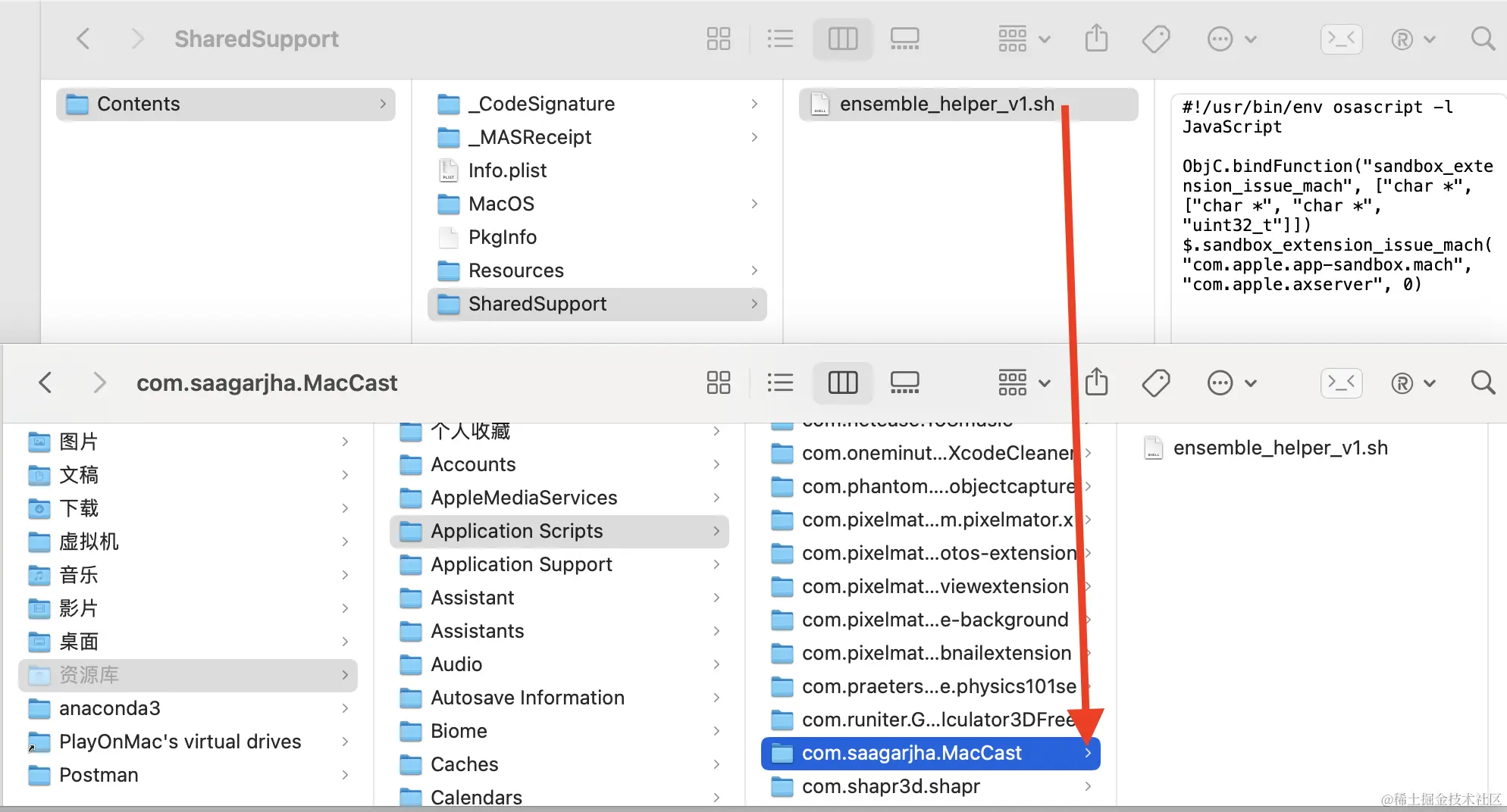 ensemble_helper_v1.sh复制到资源库中:/Users/你的用户名/Library/Application Scripts/com.saagarjha.MacCast下
