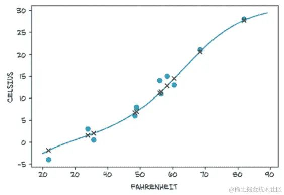 在本章中,我们将对我们的模型架构进行一些更改:我们将实现一个完整的人工神经网络来解决我们的温度转换问题。我们将继续使用上一章的训练循环,以及我们将华氏度转换为摄氏度的样本分为训练集和验证集。我们可以开始使用一个二次模型:将model重写为其输入的二次函数(例如,y = a * x**2 + b * x + c)。由于这样的模型是可微的,PyTorch 会负责计算梯度,训练循环将像往常一样工作。然而,对我们来说这并不是太有趣,因为我们仍然会固定函数的形状。