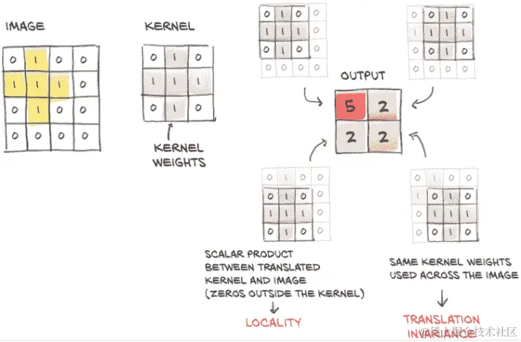 卷积可用作处理图像的前馈网络的线性操作。使用卷积可以产生参数更少的网络,利用局部性并具有平移不变性。