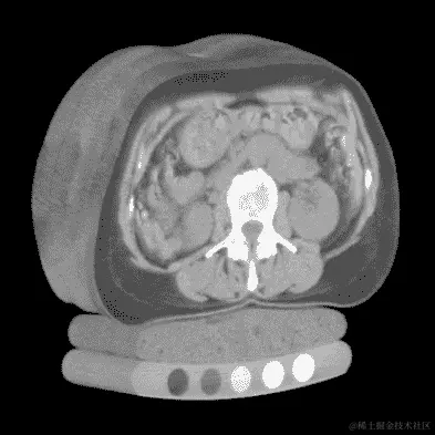 每个 CT 扫描的体素都有一个数值,大致对应于内部物质的平均质量密度。大多数数据的可视化显示高密度材料如骨骼和金属植入物为白色,低密度的空气和肺组织为黑色,脂肪和组织为各种灰色。再次,这看起来与 X 射线有些相似,但也有一些关键区别。