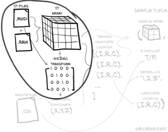将我们的原始 CT 扫描数据加载到一个可以与 PyTorch 一起使用的形式中。将原始数据放入 PyTorch 可用的形式将是您面临的任何项目的第一步。对于 2D 图像数据,这个过程稍微复杂一些,对于非图像数据则更简单。