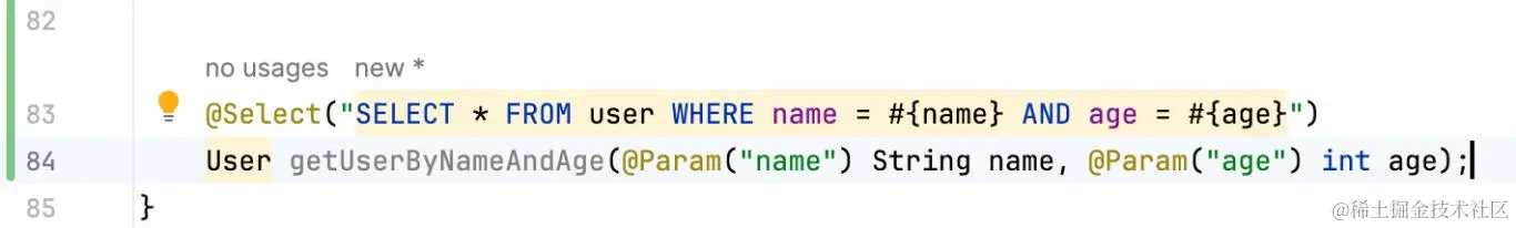 @Param注解用于给SQL语句的参数命名,可以在SQL语句中引用。例如:
