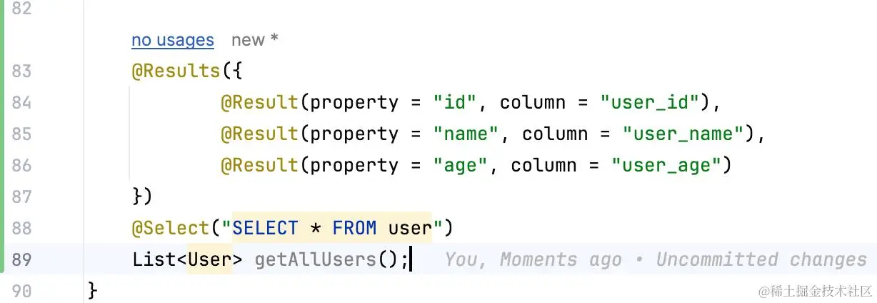 @Results注解用于设置结果集合,可以将查询结果映射到Java对象中。例如: