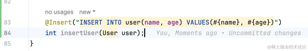 @Insert注解用于执行插入SQL语句,可以将对象插入到数据库中。例如: