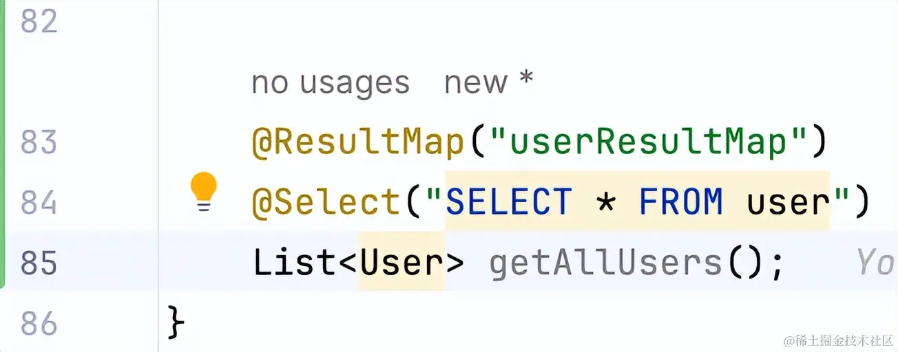 @ResultMap注解用于引用已经定义好的结果集合,可以重用已有的映射规则。例如: