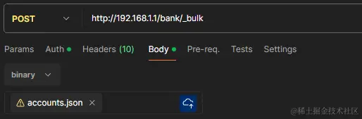 使用 [Bulk API](Bulk API | Elasticsearch Guide [8.12] | Elastic) 来批量插入,没有安装 kibana 也可以用 postman 导入