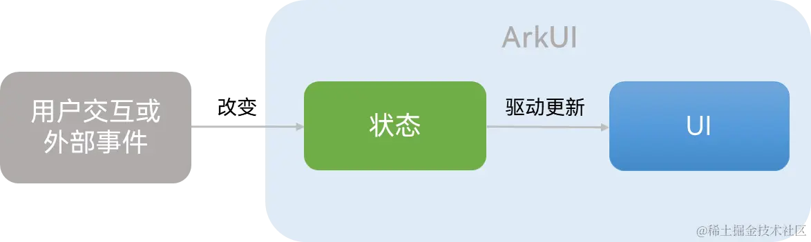 ArkUI作为一种声明式UI,具有状态驱动UI更新的特点。当用户进行界面交互或有外部事件引起状态改变时,状态的变化会触发组件自动更新。所以在ArkUI中,我们只需要通过一个变量来记录状态。当改变状态的时候,ArkUI就会自动更新界面中受影响的部分。