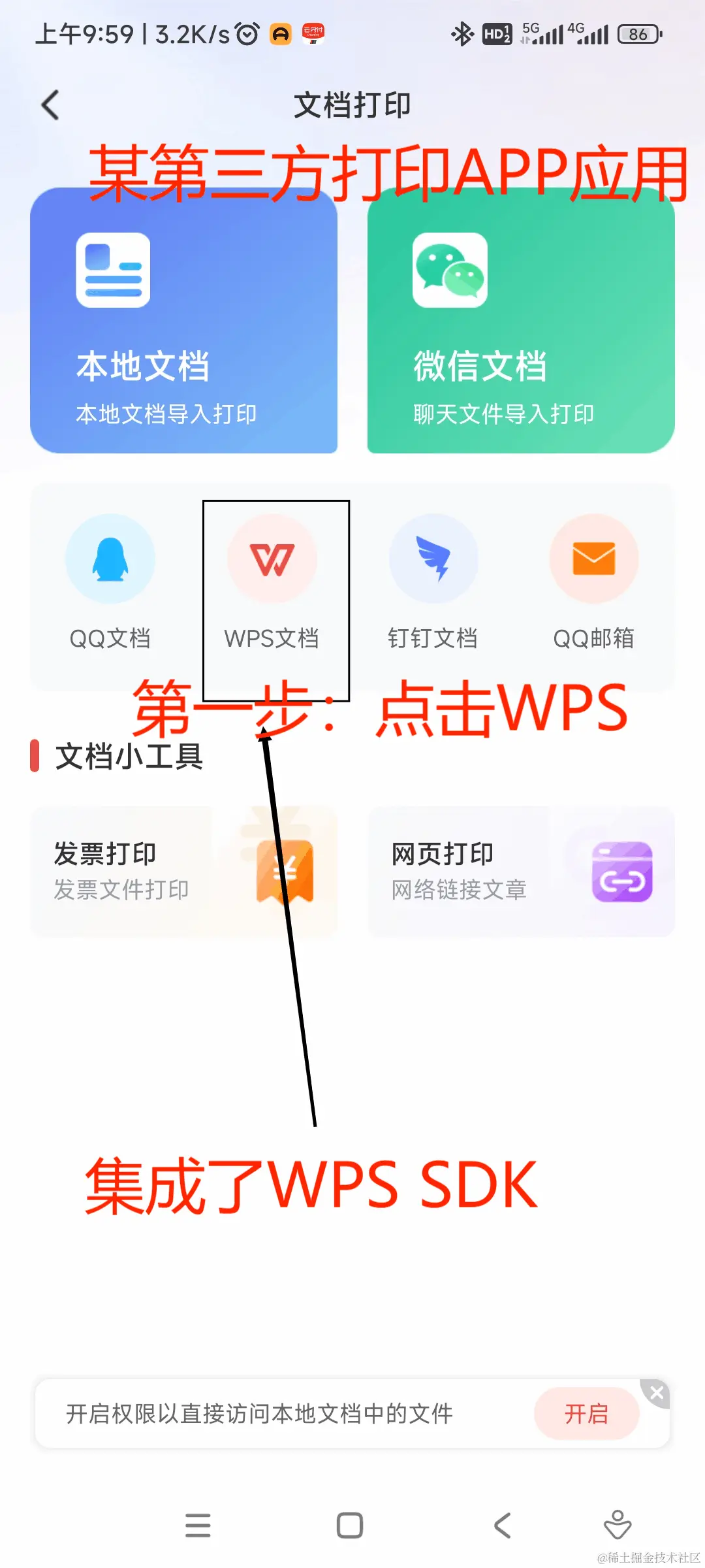 通过WPS社区文章: 解锁WPS二次开发新世界:Android开发用户专属极速接入秘籍!获取相关WPS-SDK集成资料,然后一步步实现完成,先将如何获取WPS端内文档详细步骤总结如下: