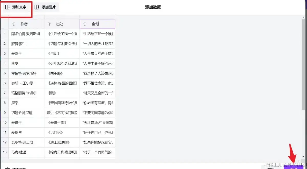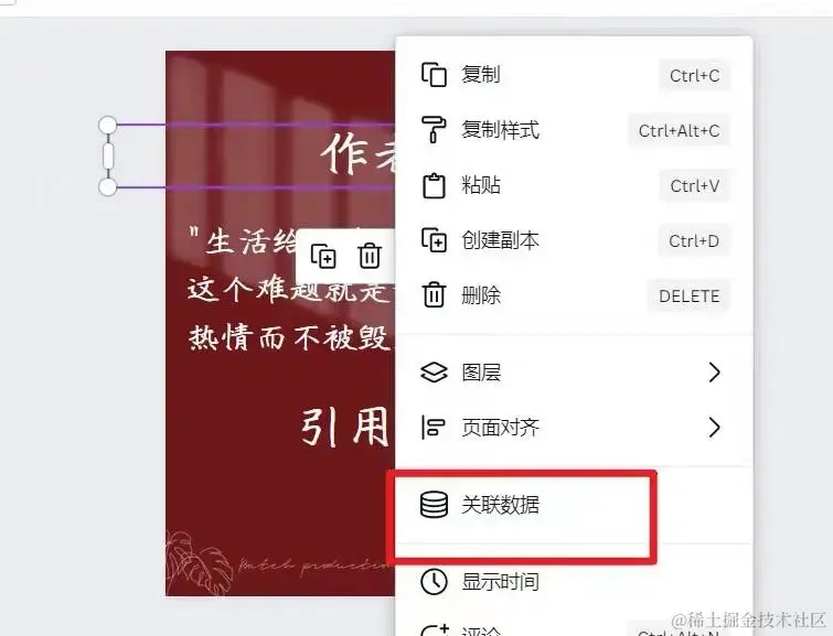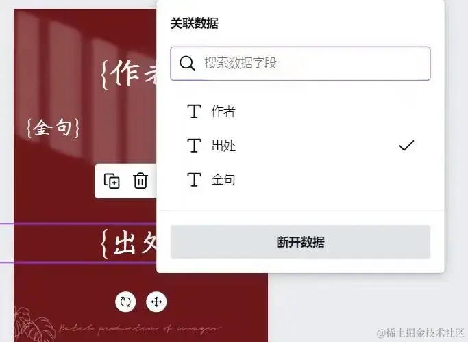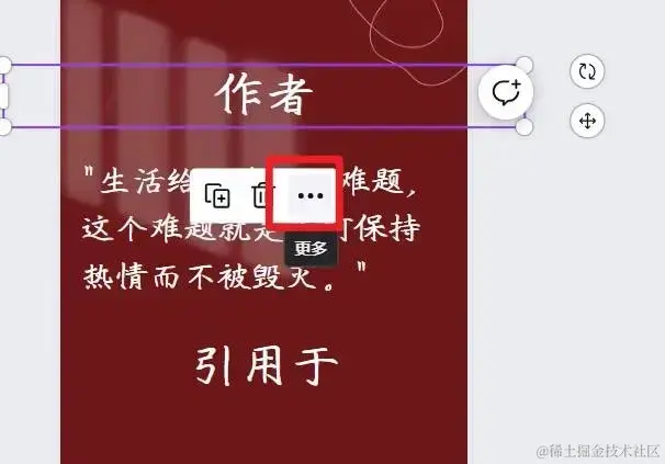 数据添加完成后,选中素材中文案,点击三点:
