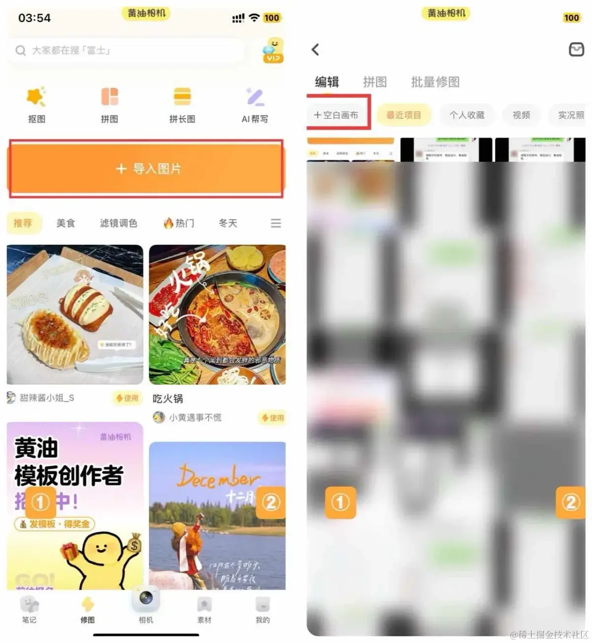 ① 点击导入-选择空白画布,选择喜欢背景图及尺寸(建议3:4或1:1)。
