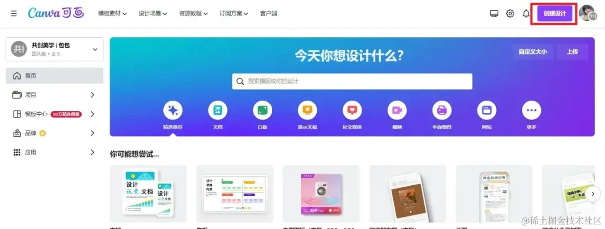 点击创建设计或将已经用黄油制作好的背景图导入,直接创建新的设计。