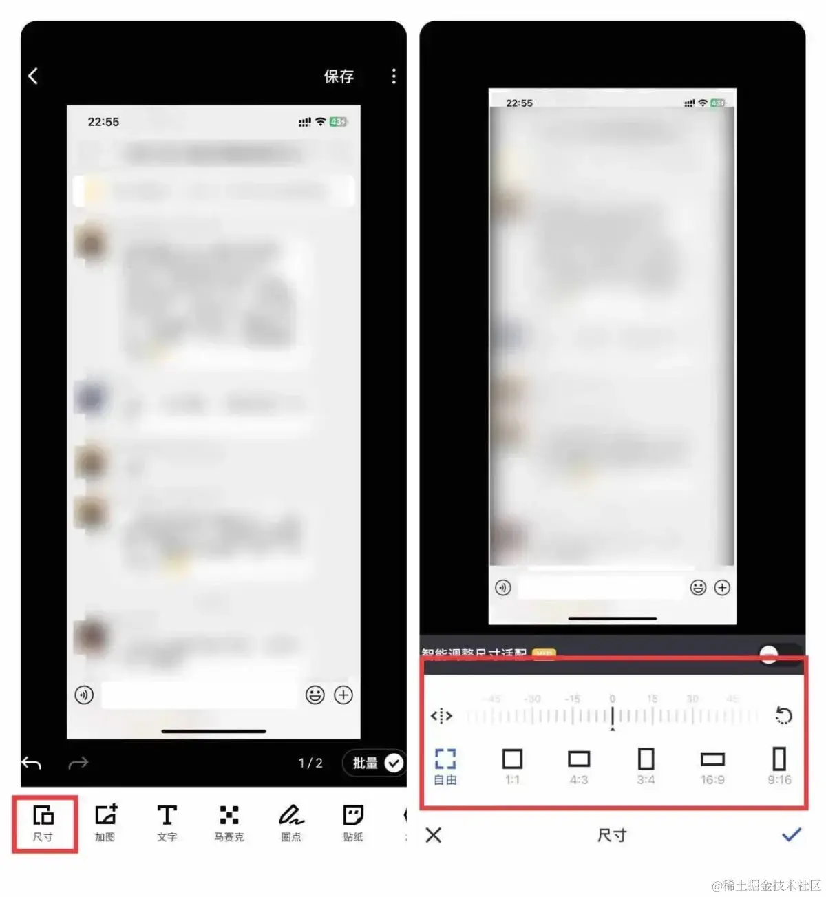 不退出编辑状态,选择尺寸,手指拖动合适大小裁剪,点击蓝色√即可。完成后点击保存,即可批量保存。