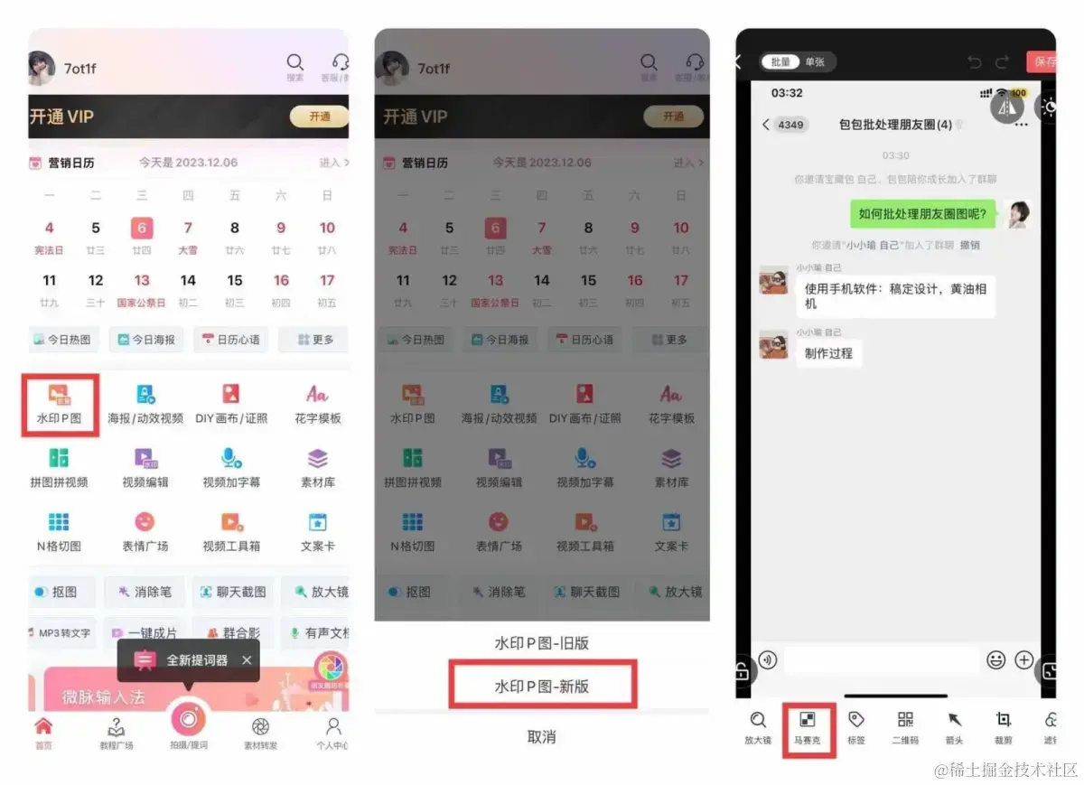 进去界面后,点击水印P图-新版,选择图片,点击马赛克,手动选择马赛克位置。完成后点击右上角✓即可。一键打码需要会员。