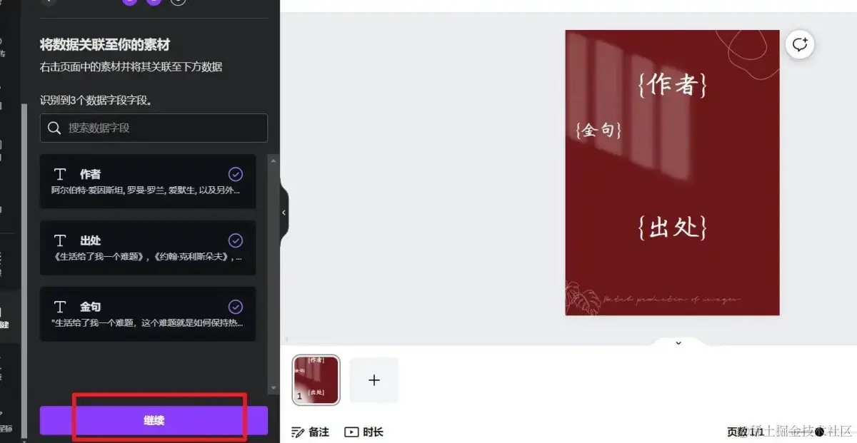 全部完成后页面会显示{},左侧点击继续: