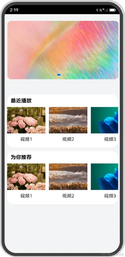 自定义控制器容器内嵌套了视频播放时间Text组件、滑动器Slider组件以及视频总时长Text组件 3个横向排列的组件,其中Text组件在之前的基础组件课程中已经有过详细介绍,这里就不再进行赘述。需要强调的是两个Text组件显示的时长是由Slider组件的onChange(callback: (value: number, mode: SliderChangeMode) => void)回调事件来进行传递的,而Text组件的数值与视频播放进度数值value则是通过@Provide与 @Consume装饰器进行的数据联动,实现效果可见图片下方黑色控制栏部分,具体代码步骤及代码如下: