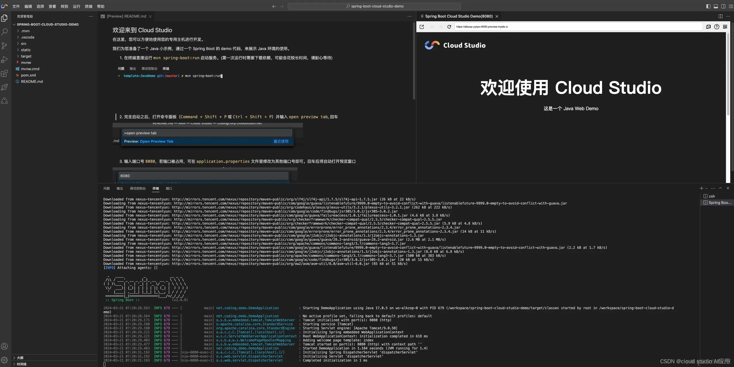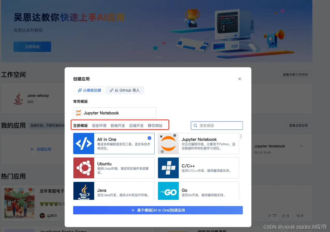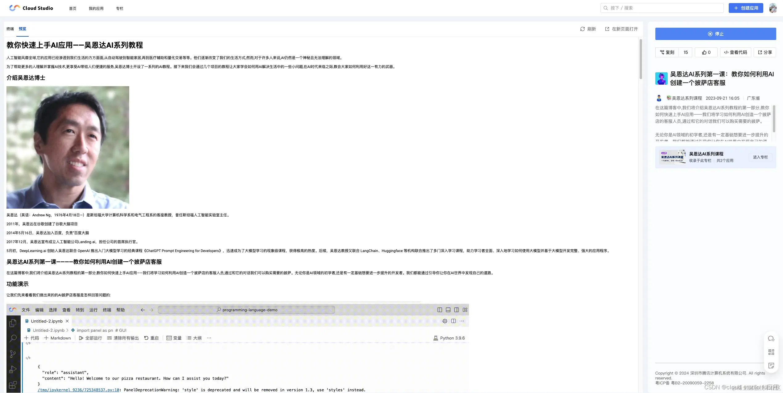 Cloud Studio Club轻量版是腾讯云推出的一款在线集成开发环境(IDE),它将开发环境、运行环境和数据环境完美地集成在云端,让开发者可以随时随地、无需配置即可进行编程。无论你是个人开发者,还是企业团队,Cloud Studio Club轻量版都能为你提供一站式的开发解决方案。同时多种在线应用可以随时运行。在这里有丰富的Web、AI和语言类的免费模版进行参考。