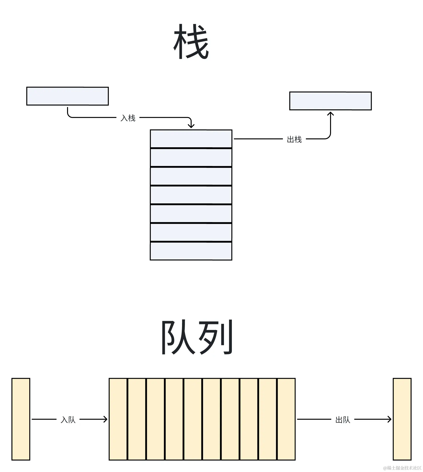 “先进先出”“先进后出”,相信大家都听过,而这很形象地形容了栈与队列。