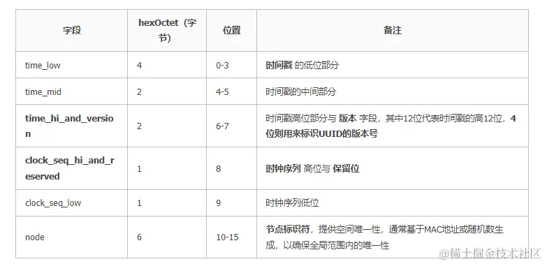 第一张是UUID 各部分的组成,time_low ,time_mid, time_hi_and_version 包含了时间戳的不同部分。