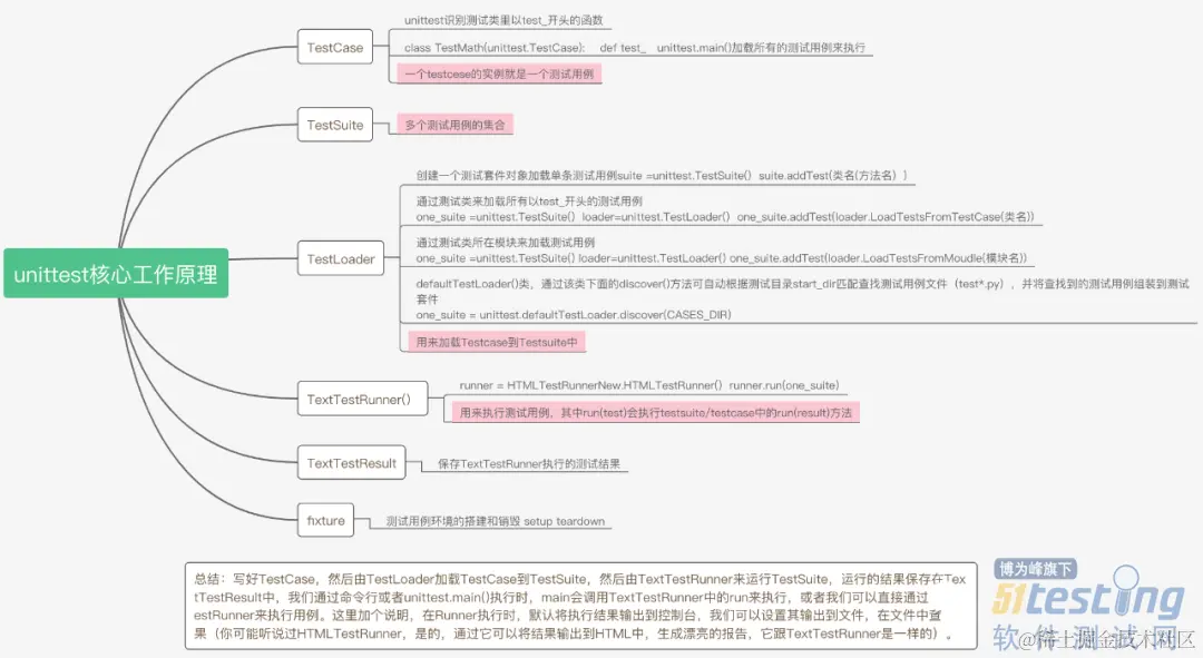 · 编写继承自 unittest.TestCase 的测试用例类,其中每个测试函数都是一个独立的测试用例。
