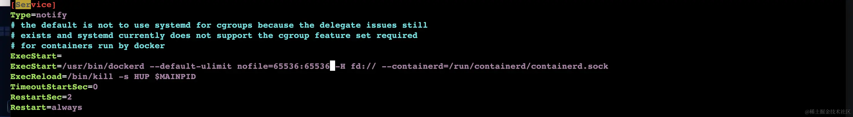 尝试修改docker.services文件(/usr/lib/systemd/system/docker.service) 按照下图的信息进行配置ExecStart参数