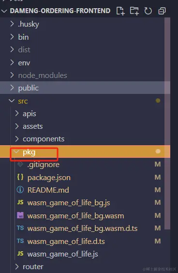 将生成的pkg文件夹复制到前端项目的适当路径下。