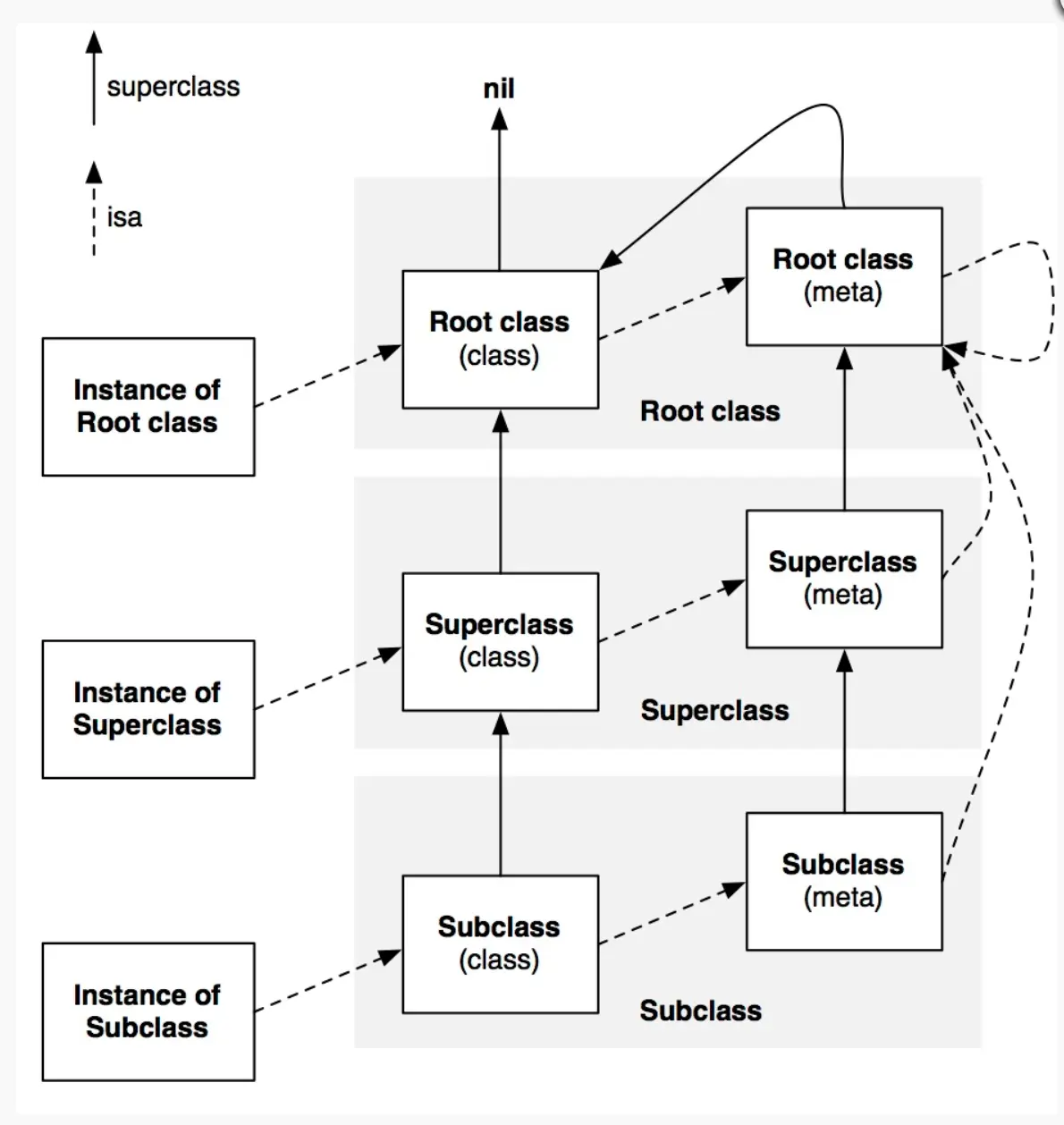 下面看一下实例对象、类对象、元类之间关系的经典图示: