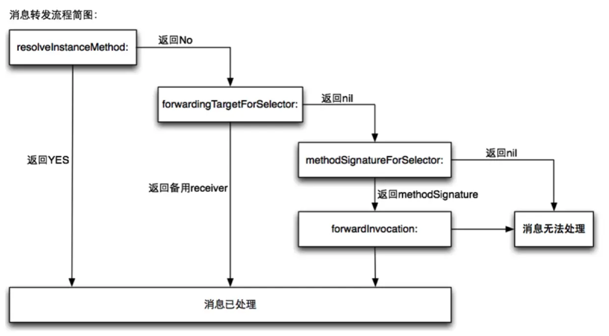 sayHello方法,则继续查询父类的父类,直到追溯到最上层NSObject。 - 若还是没有找到,则启用动态方法解析、备用接收者、消息转发三部曲,给程序最后一个机会