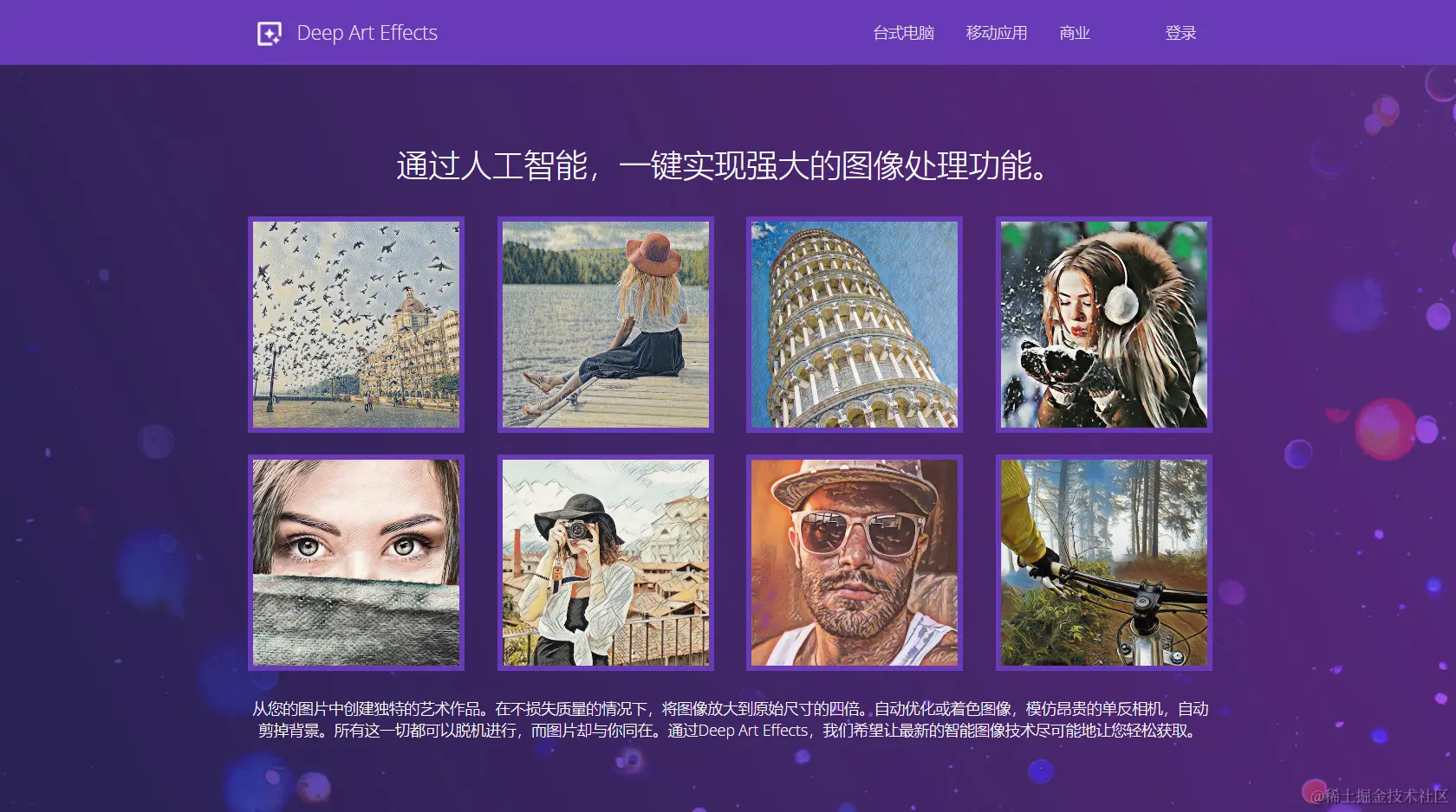 用户评论:用户对 DeepArt 的评价普遍积极,他们喜欢这款工具能够将普通照片转换成具有艺术感的图像。用户表示,DeepArt 提供的艺术风格选择多样,转换效果自然且富有创意。不过,一些用户提到,对于某些特定的风格或细节复杂的图片,DeepArt 的转换效果可能不尽如人意。