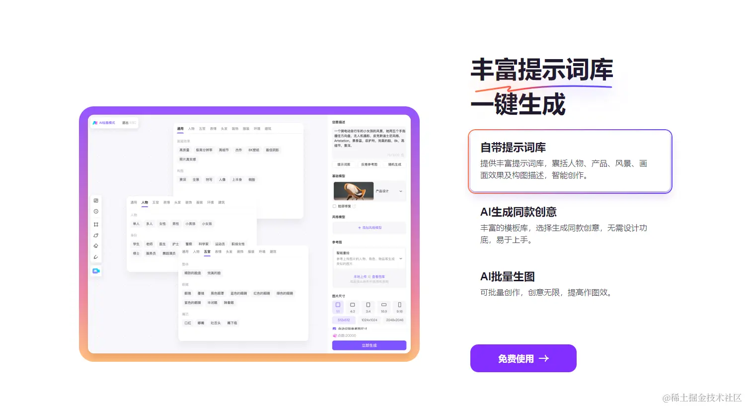 ③ 自带 AI 提示词库,文生图灵感爆棚