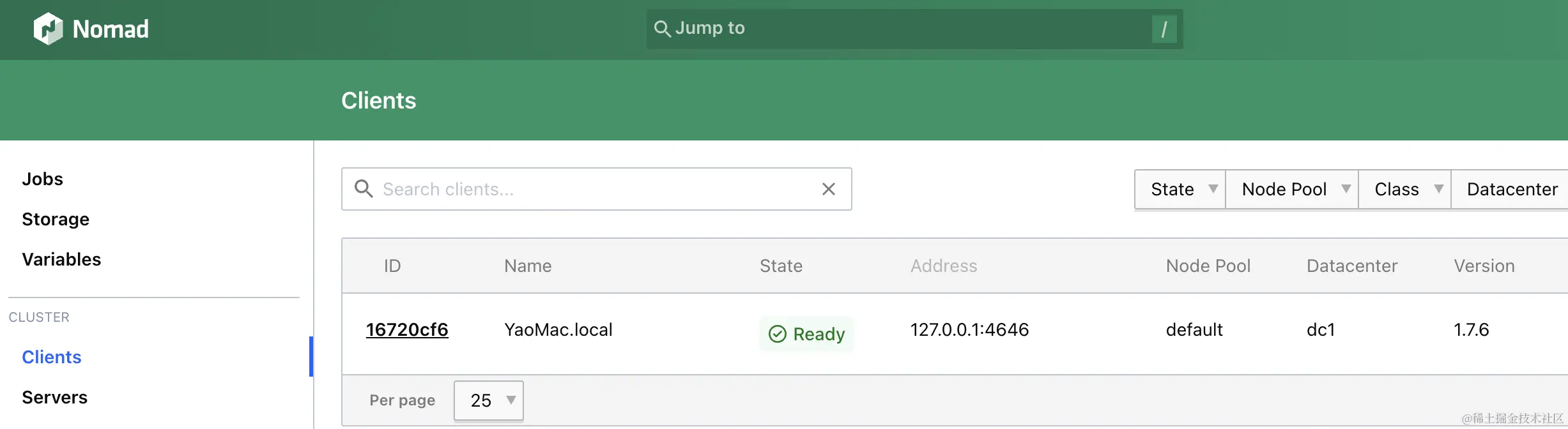 当然,也可以通过 UI 界面进行查看,Client 和 Server 已经启动完成。