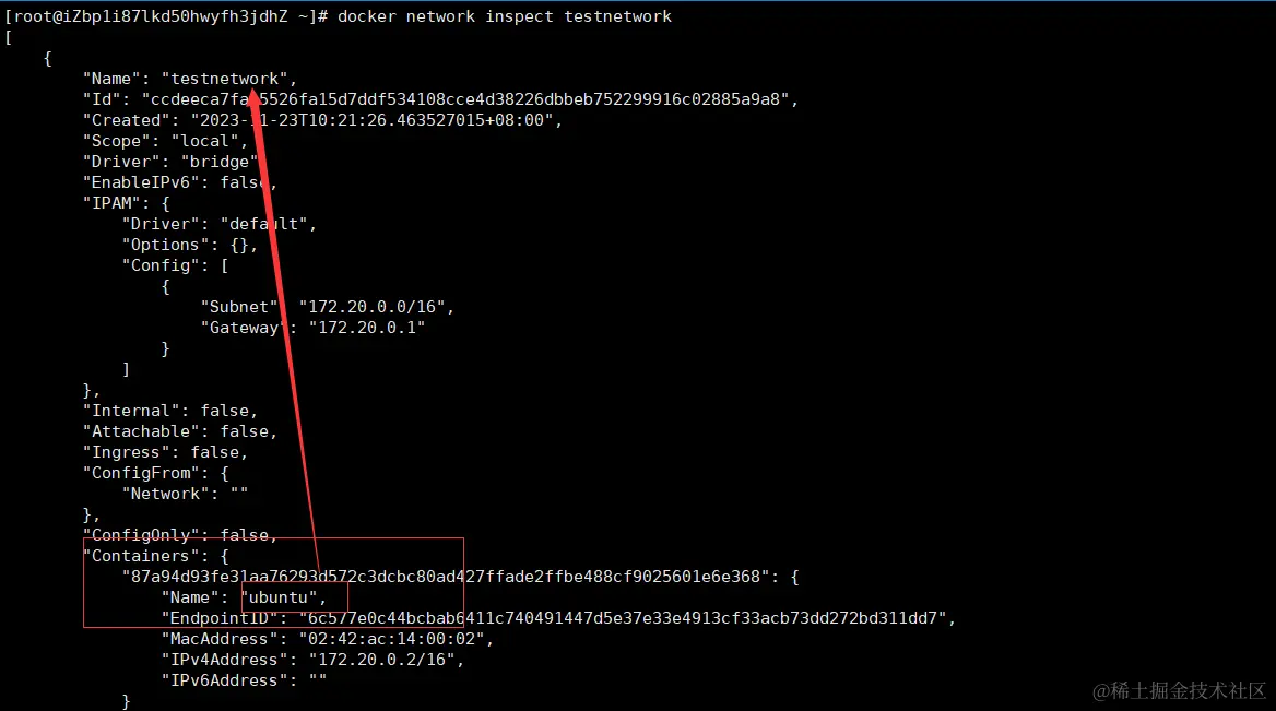 docker network inspect testnetwork