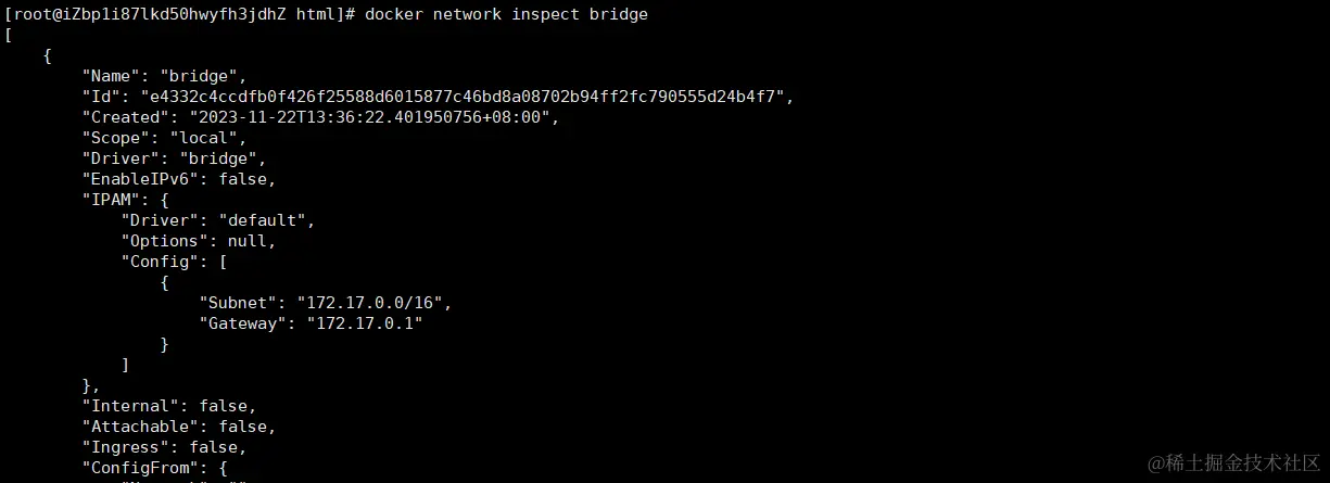 $ docker network inspect bridge