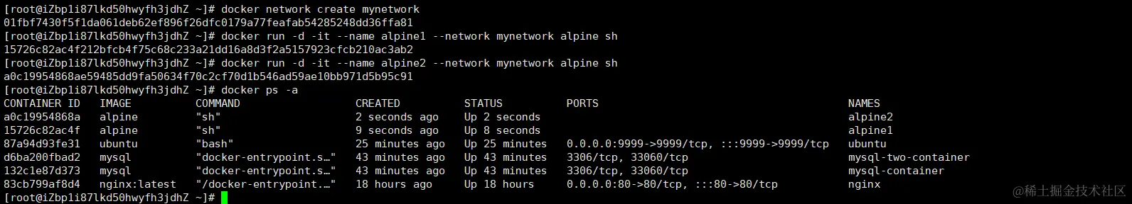 # 这将创建一个名为 "alpine2" 的容器,并将其连接到 "mynetwork" 网络。