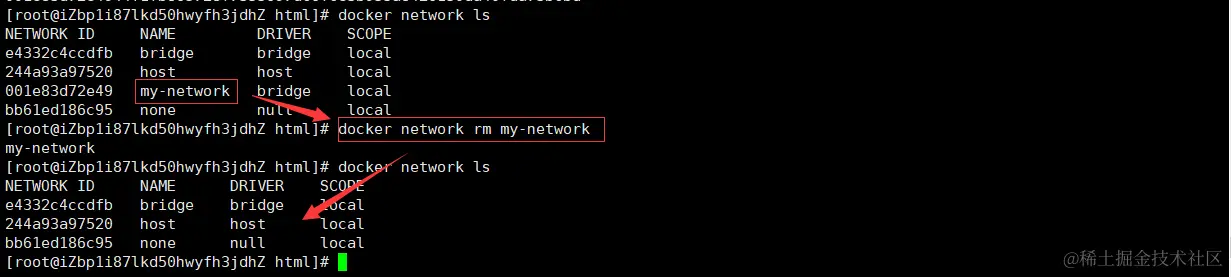 $ docker network rm NETWORK [NETWORK...]