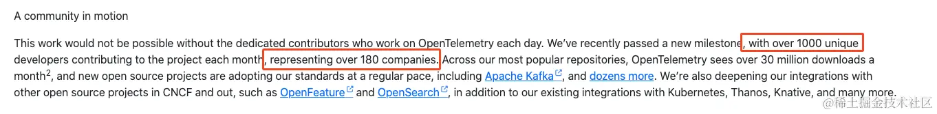 当然也有对应的不是由某一个厂商发起的项目,比如我最近参与较多的 OpenTelemetry 社区。
