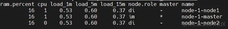 第二行的master节点的role为im,也就是ingest和master。