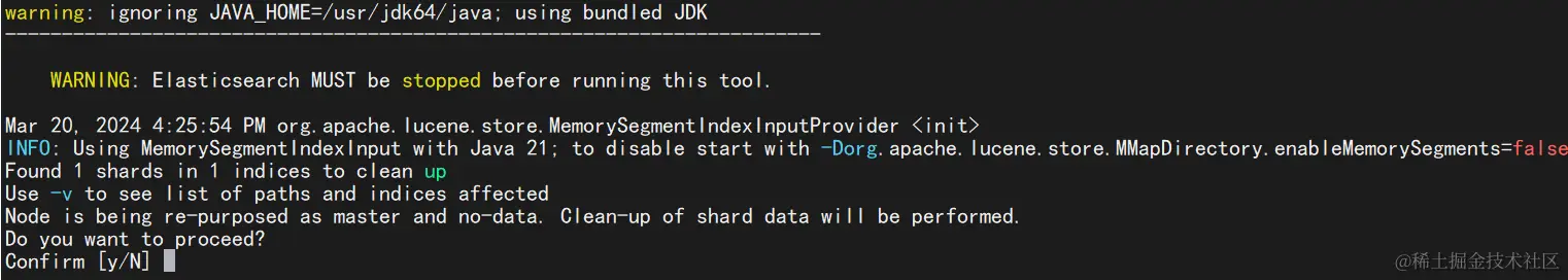 提示说使用elasticsearch-node repurpose工具进行清理。
