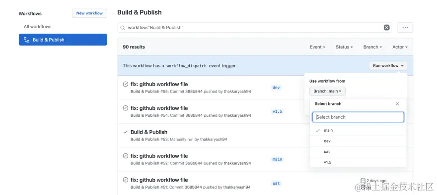 - workflow_dispatch 手动运行构建过程。如果我们不写这个,我们的工作流程将在每次推送到存储库的任何分支时运行。你可以在这里阅读更多。