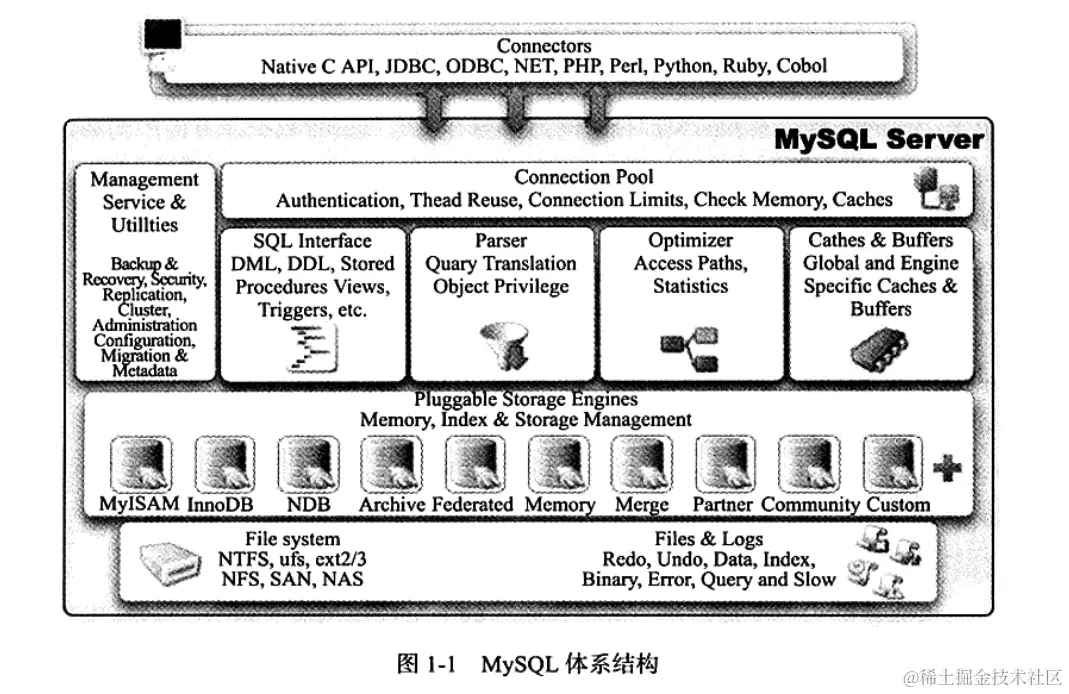 MySQL的体系结构可以大致划分为几个主要组件:
