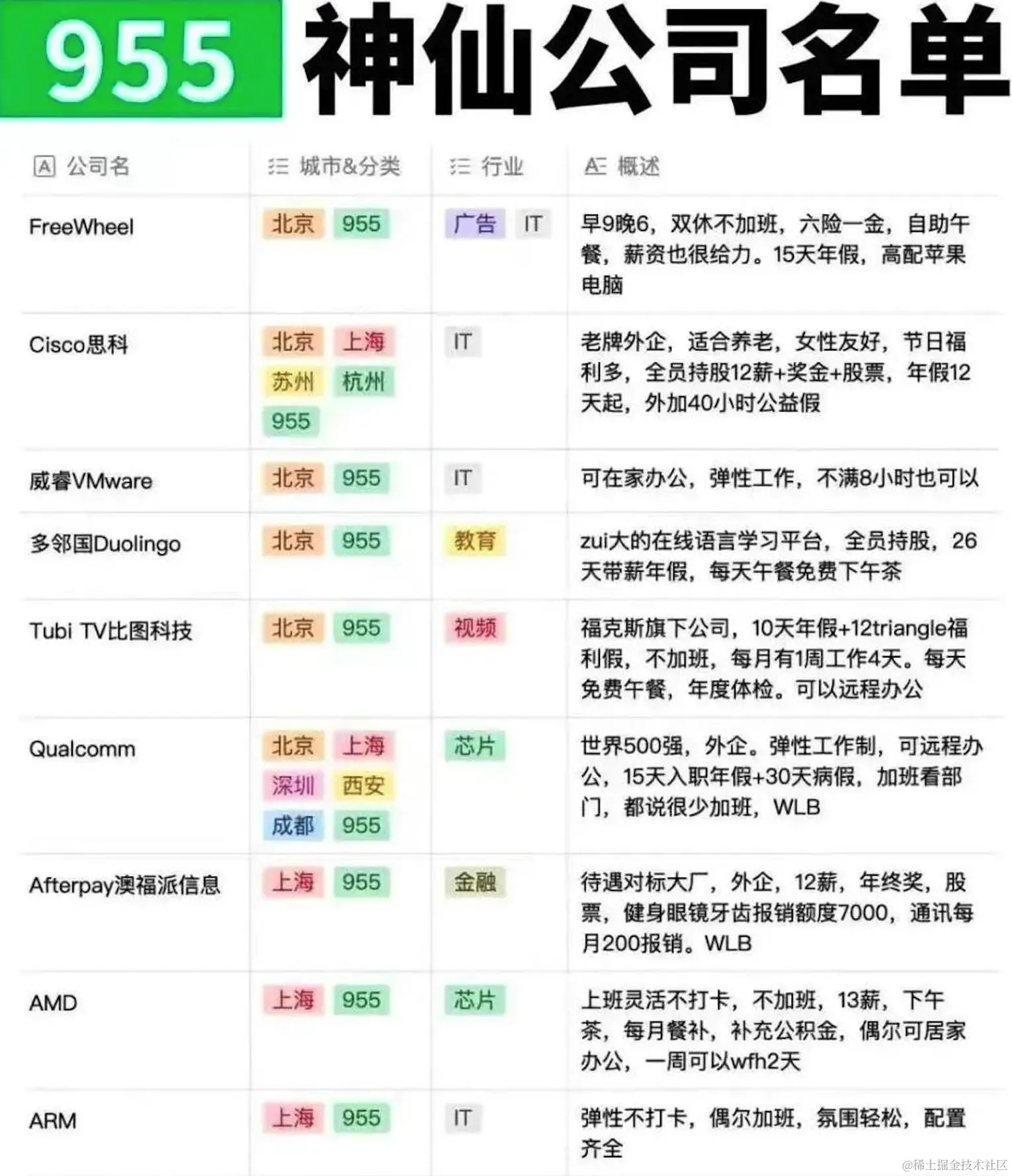 往常爆料最多的 955 神仙公司名单通常都是集中在一线城市的外企。