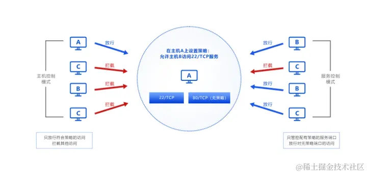 1、主机控制模式:为每个业务端口配置策略,严密防护。