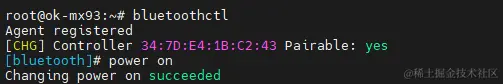 这个蓝牙是与Wi-Fi一体的BL-M8723DU1模块,通过命令bluetoothctl打开蓝牙设备。