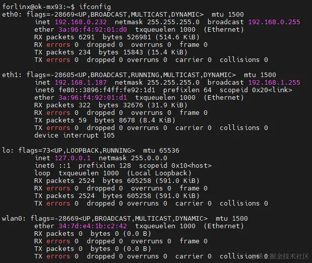 飞凌嵌入式OK-MX9352-C开发板有两个千兆网口,其中eth0是静态IP,地址为192.168.0.232,这个地址比较大,也是为了避免与局域网内的其他设备冲突。